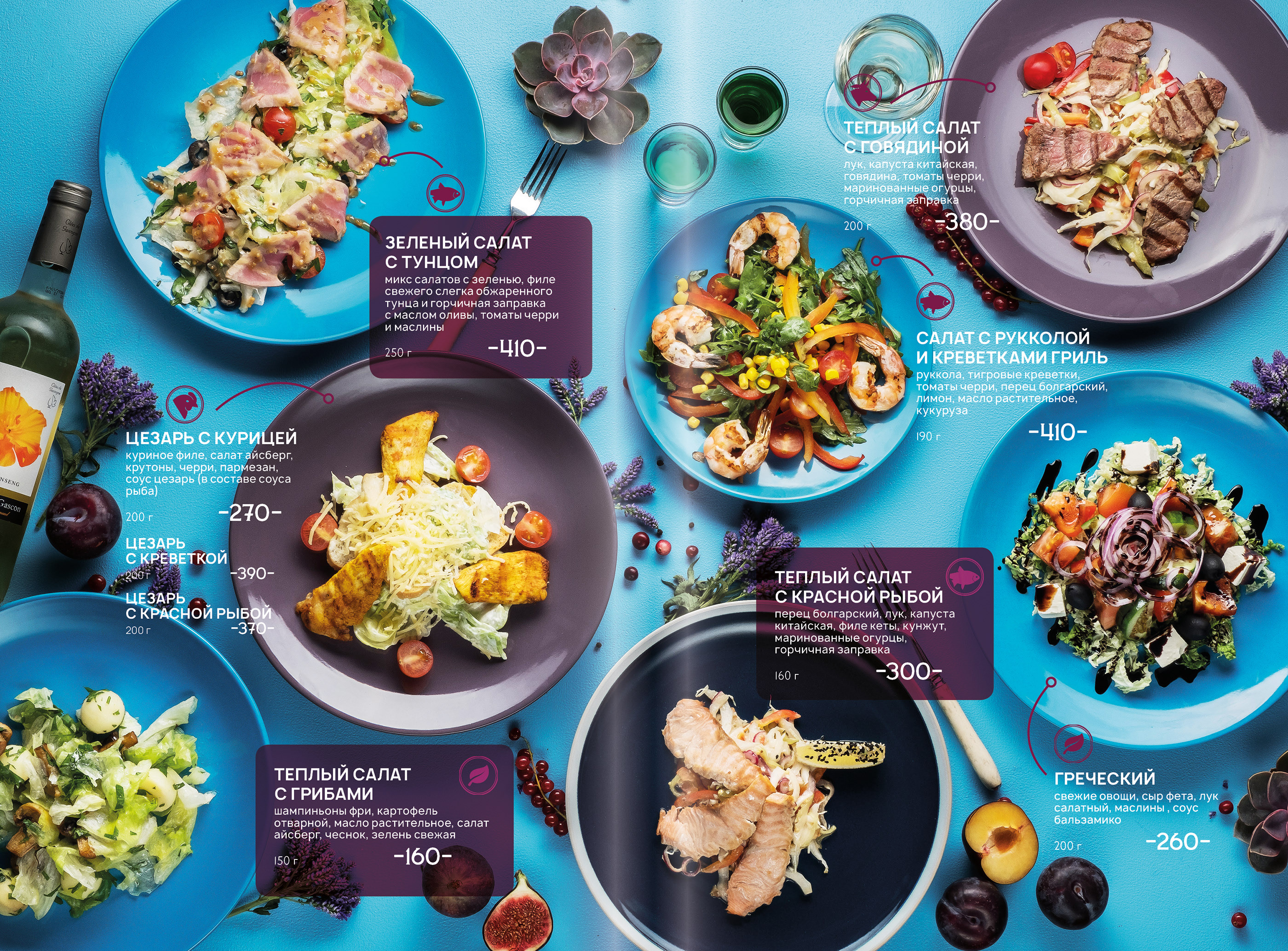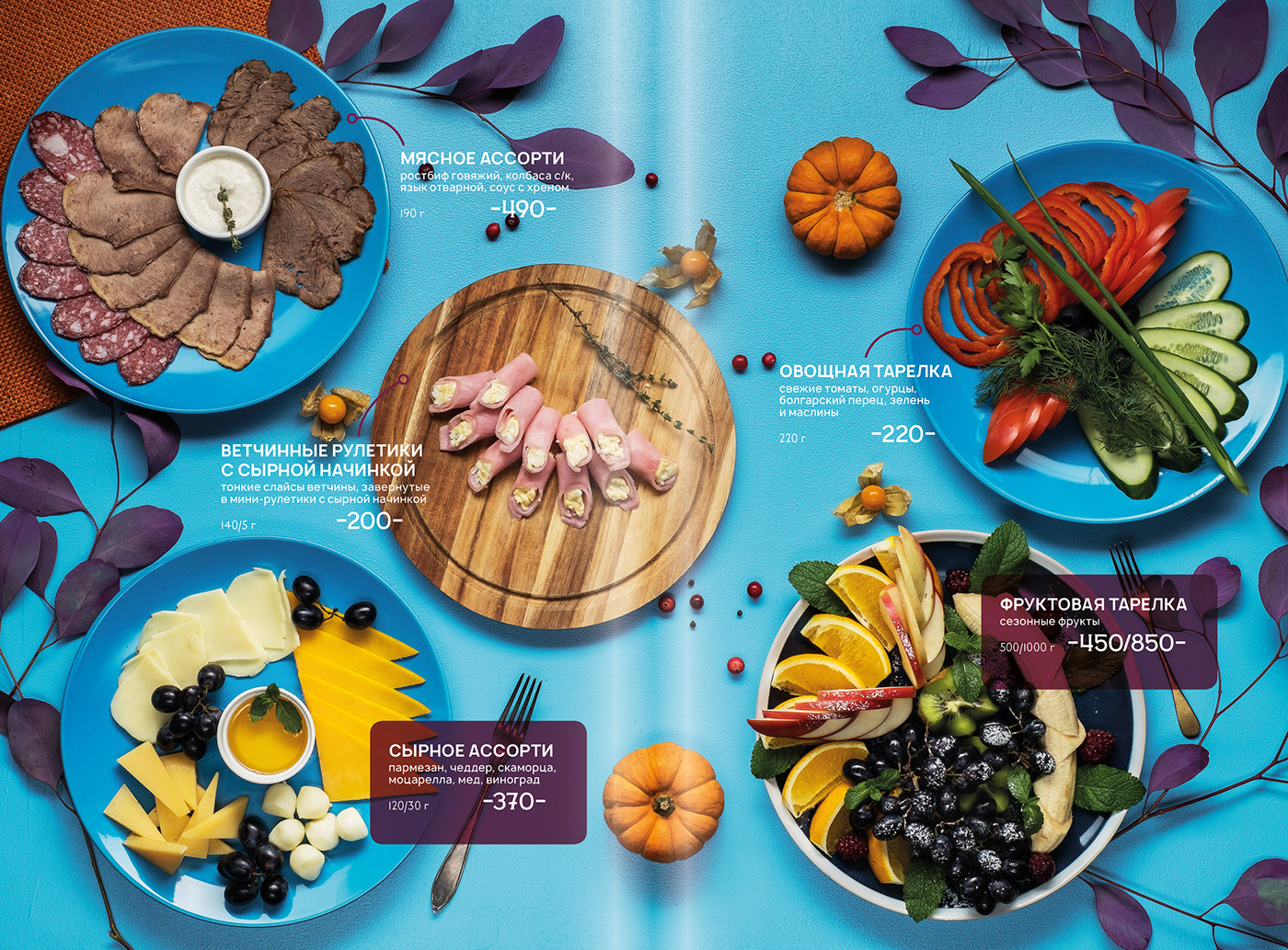 Все блюда оформлены в индивидуальном и неповторимом авторском дизайне.